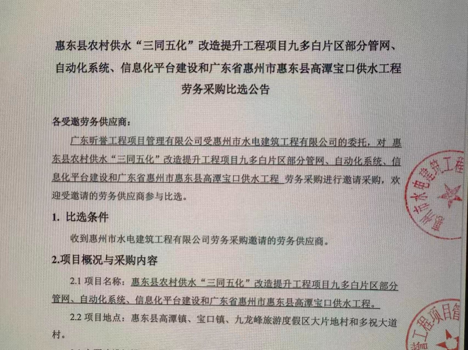 惠州市水電建筑工程有限公司成立于一九六四年四月,隸屬惠州市水務(wù)集團(tuán)有限公司,是一家國(guó)有綜合性施工企業(yè),主營(yíng)水利水電工程、房屋建筑、市政工程等施工業(yè)務(wù)。公司擁有水利水電工程施工總承包一級(jí)、建筑工程施工總承包一級(jí)、市政公用工程施工總承包一級(jí)、公路工程施工總承包三級(jí),公路路基、路面及建筑裝修裝飾專業(yè)承包二級(jí),環(huán)保工程、機(jī)電安裝、河湖整治、輸變電工程專業(yè)承包三級(jí)等經(jīng)營(yíng)資質(zhì)……